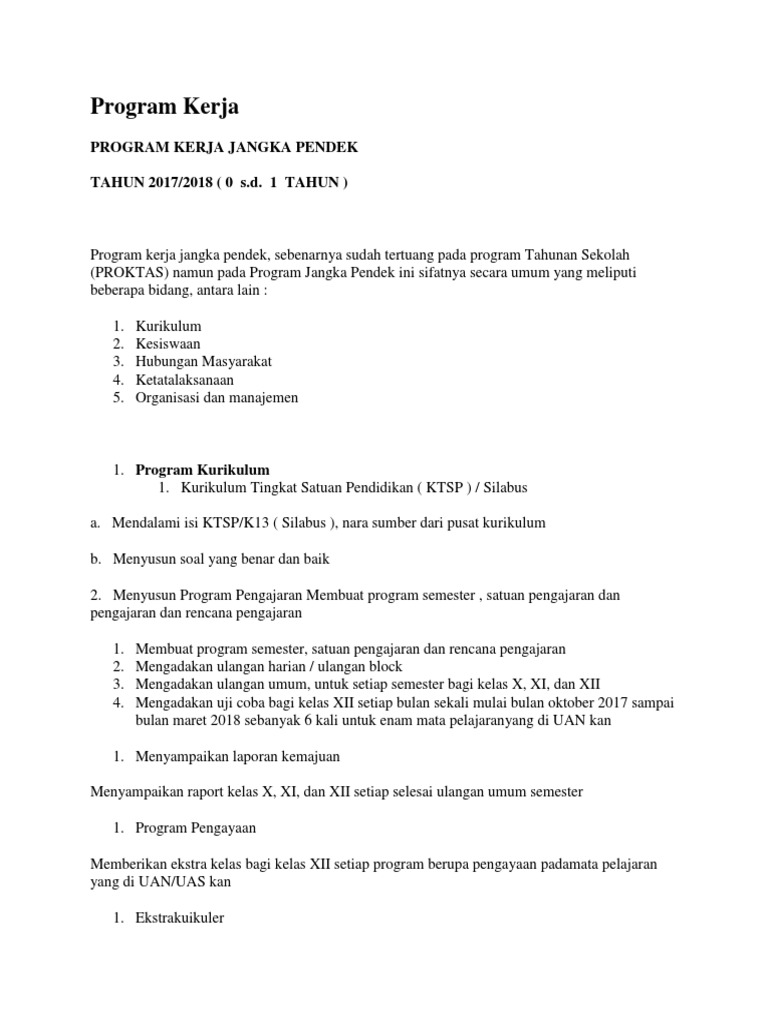 Program Kerja Tahunan Menengah Dan Panjang Smk Mahardika Pdf